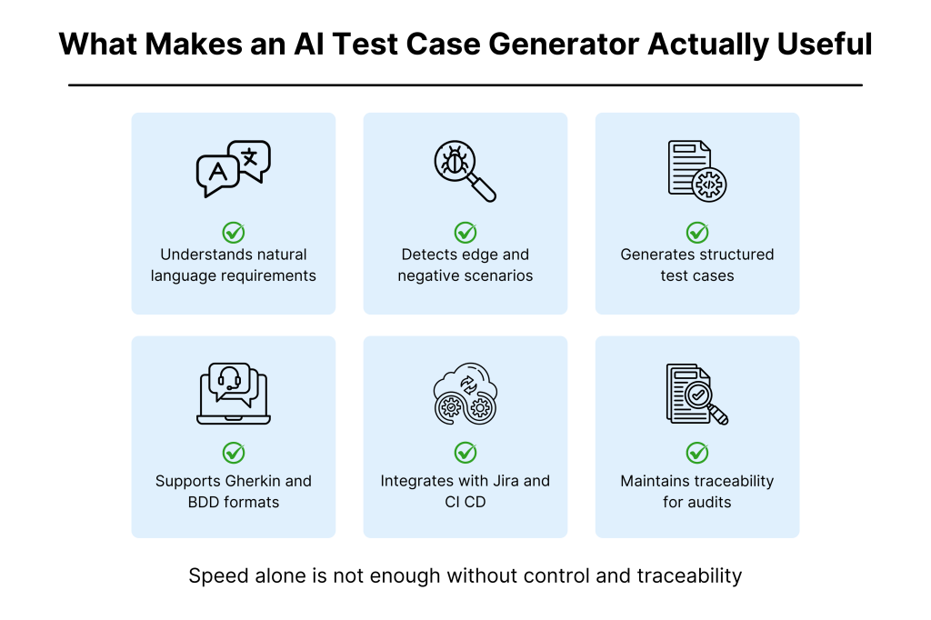 A good AI test case generator excels at parsing complex user stories and requirements with high precision. It automatically identifies edge cases, boundary conditions and negative scenarios that manual testers often overlook.