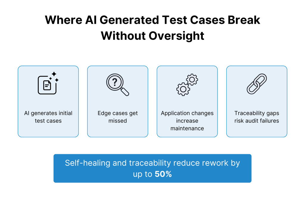 Hence, hybrid manual-AI workflows become necessary for comprehensive suites.