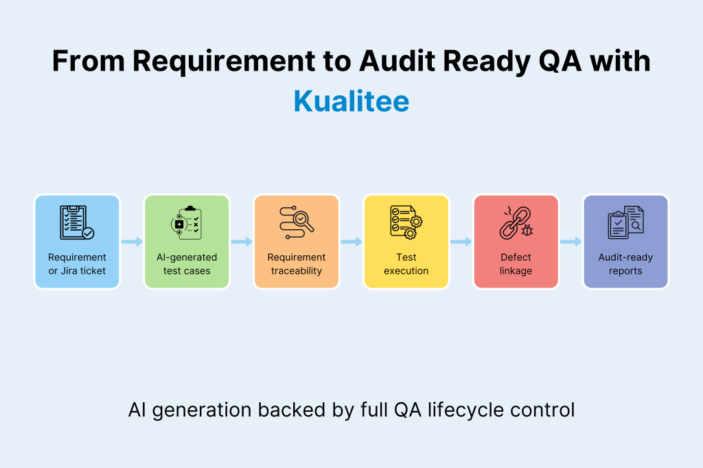 Explore how Kualitee turns AI-generated test cases into full QA control. Check out its features and see what real traceability looks like.