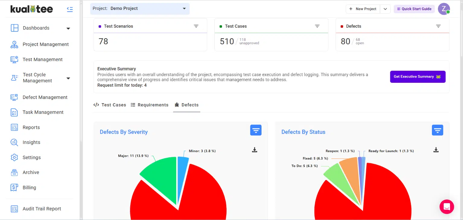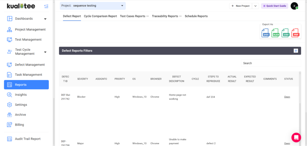 Generate custom reports for test, bug, and execution, and export them in a format of your choice. Teams can schedule reports to receive automatic updates through emails, minimizing the time and effort to develop new reports from scratch every time.