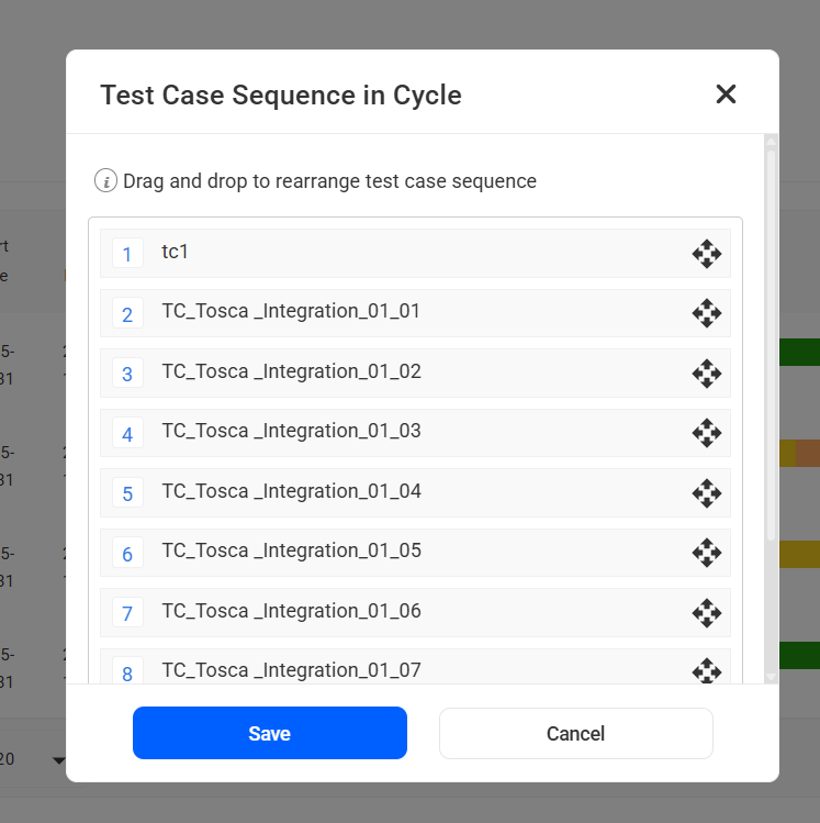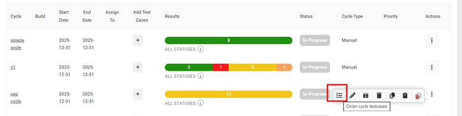 Click on “order cycle test cases” button to arrange test cases in cycle