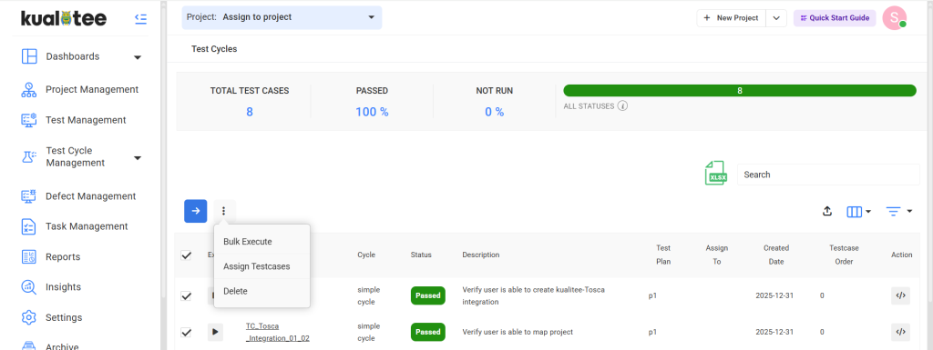 You can now assign test cases directly on Test case execution screen by clicking on Actions > Assign test cases.