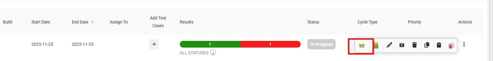 4- Navigate back to the cycle listing screen and click on the Actions button. Once that’s done, select the Hootie icon to start the automated execution of the entire cycle.