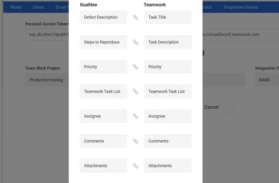 To configure the two-way integration between Kualitee and Teamwork, you need admin access on the tools. The integration is basic, with hard-coded field to field mapping.
