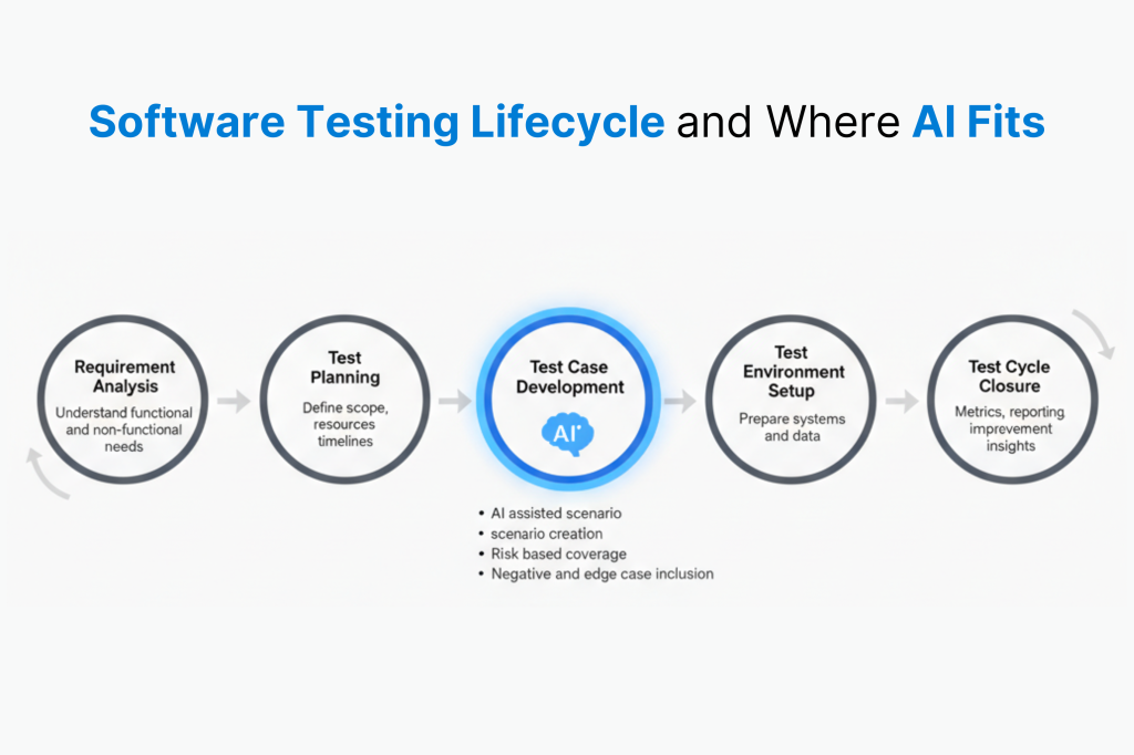 To use AI in software testing, it’s good to understand the STLC first. The Software Testing Lifecycle, or STLC, follows steps to ensure quality.